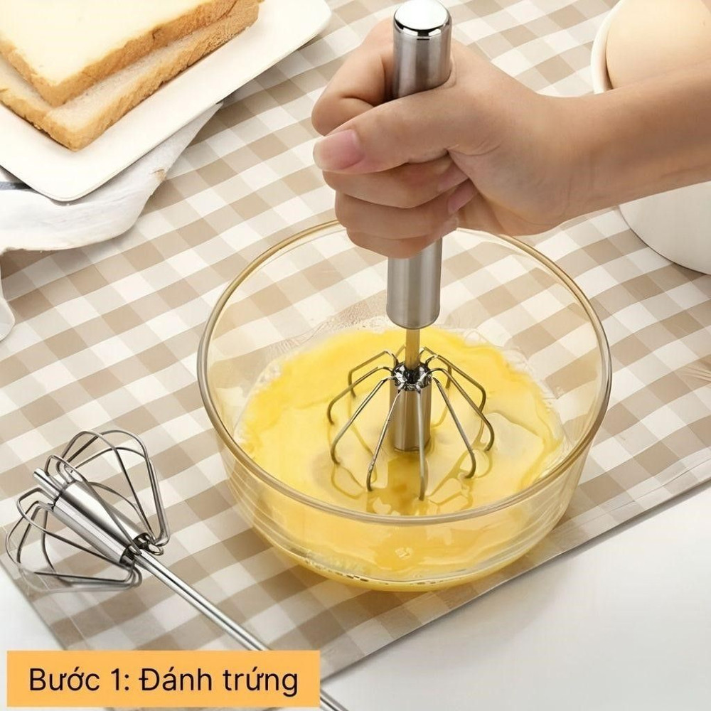 Đánh trứng: Đập trứng gà vào tô, thêm đường và muối. Dùng máy đánh trứng hoặc phới lồng, đánh đều đến khi hỗn hợp bông mịn.