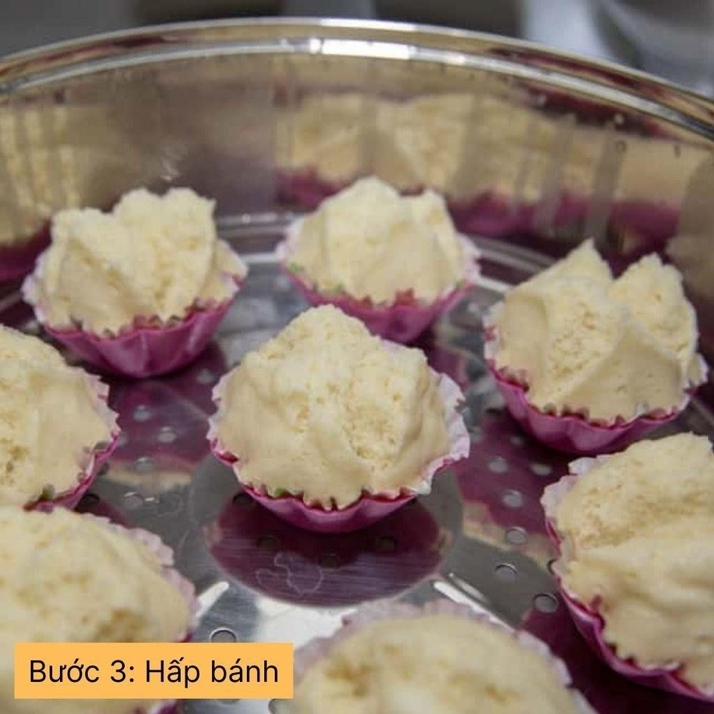 Đổ hỗn hợp bột vào khuôn bánh thuẫn, hấp khoảng 15-20 phút trên lửa vừa cho đến khi bánh chín, có màu vàng đẹp và thơm.
