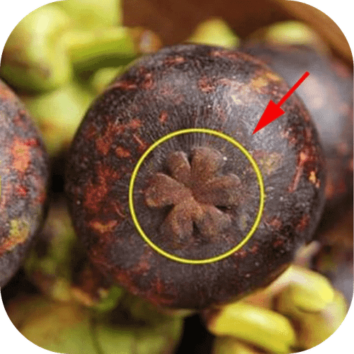 Để đảm bảo bạn chọn được măng cụt tốt nhất, không thể bỏ qua bước kiểm tra cuối cùng này. Hãy nhìn vào đáy của trái măng cụt, và bạn sẽ thấy một hình bông hoa thú vị. Số lượng cánh hoa này thường tương ứng với số múi măng cụt bên trong.