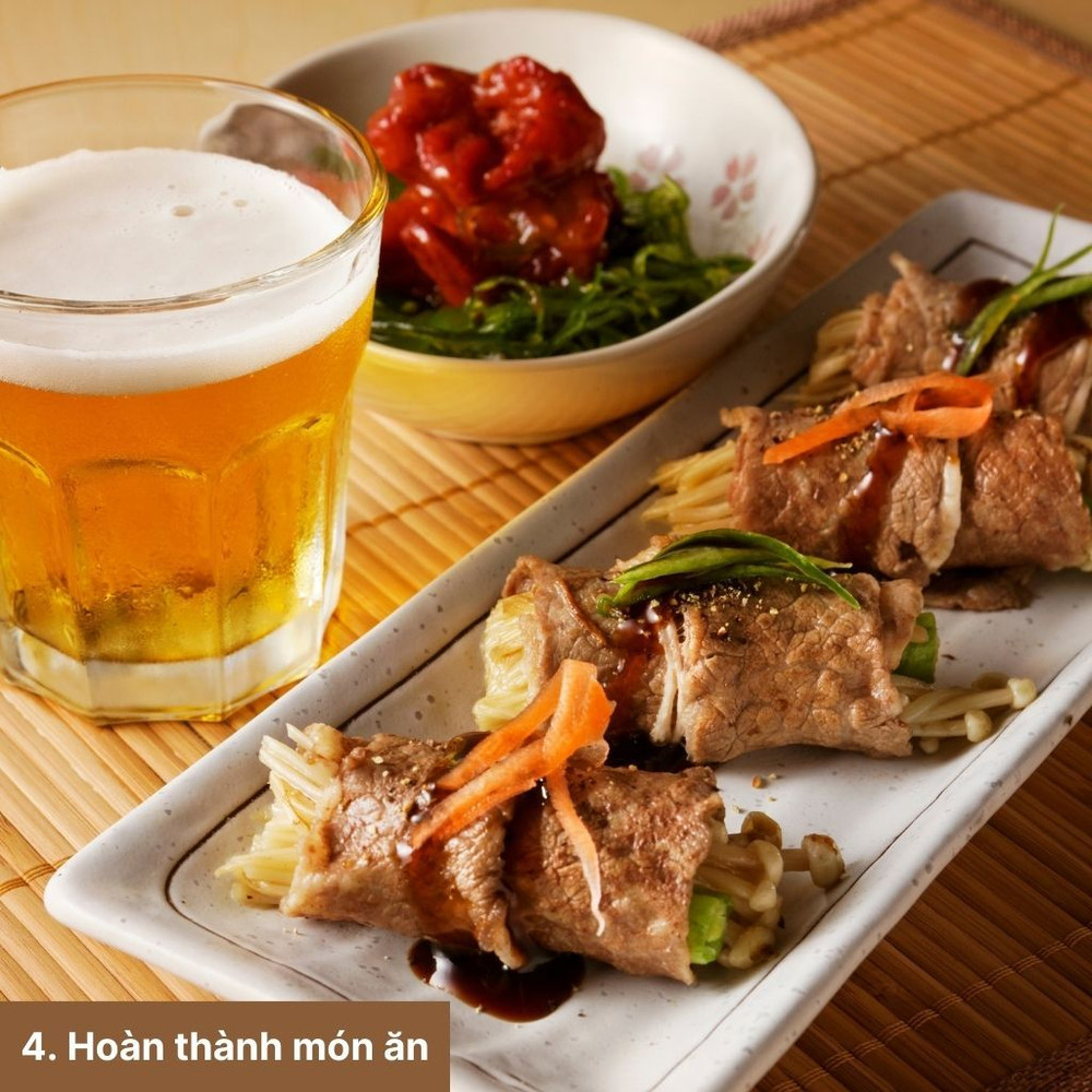 Bí quyết làm bò cuộn nấm kim châm thơm ngon