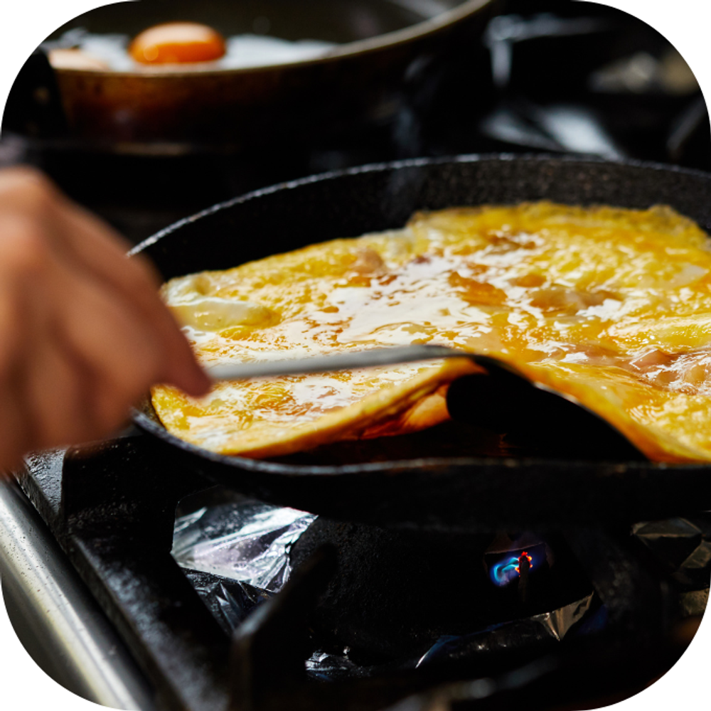 - Dầu ăn: Dùng dầu ăn để chiên trứng và thịt.