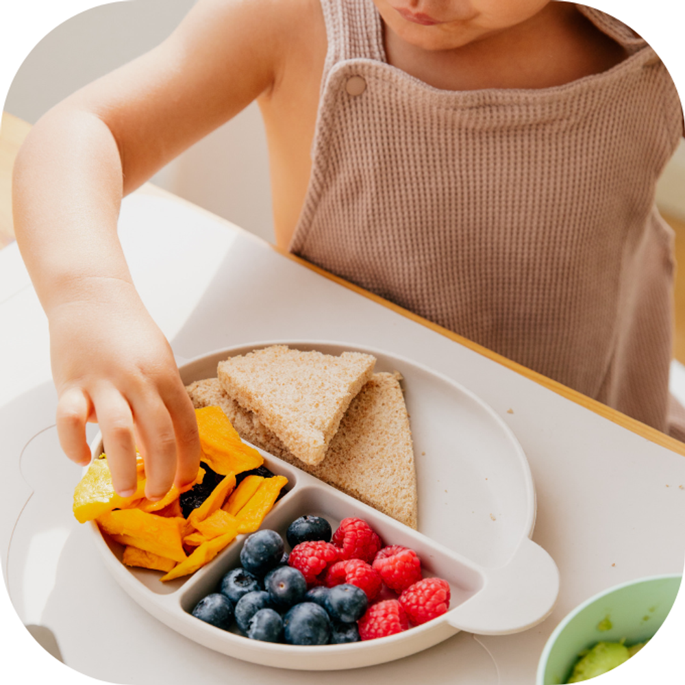 Khi bé chuyển từ chế độ ăn lỏng sang chế độ ăn đặc, bố mẹ cần tăng cường bổ sung số lượng rau củ quả và giảm nước trong thức ăn. Bé từ 1 tuổi trở lên có thể ăn cả rau củ và trái cây có thể cầm tay và nhai, bố mẹ cần chú trọng đến việc kết hợp các loại thực phẩm và động viên bé trong quá trình ăn uống.