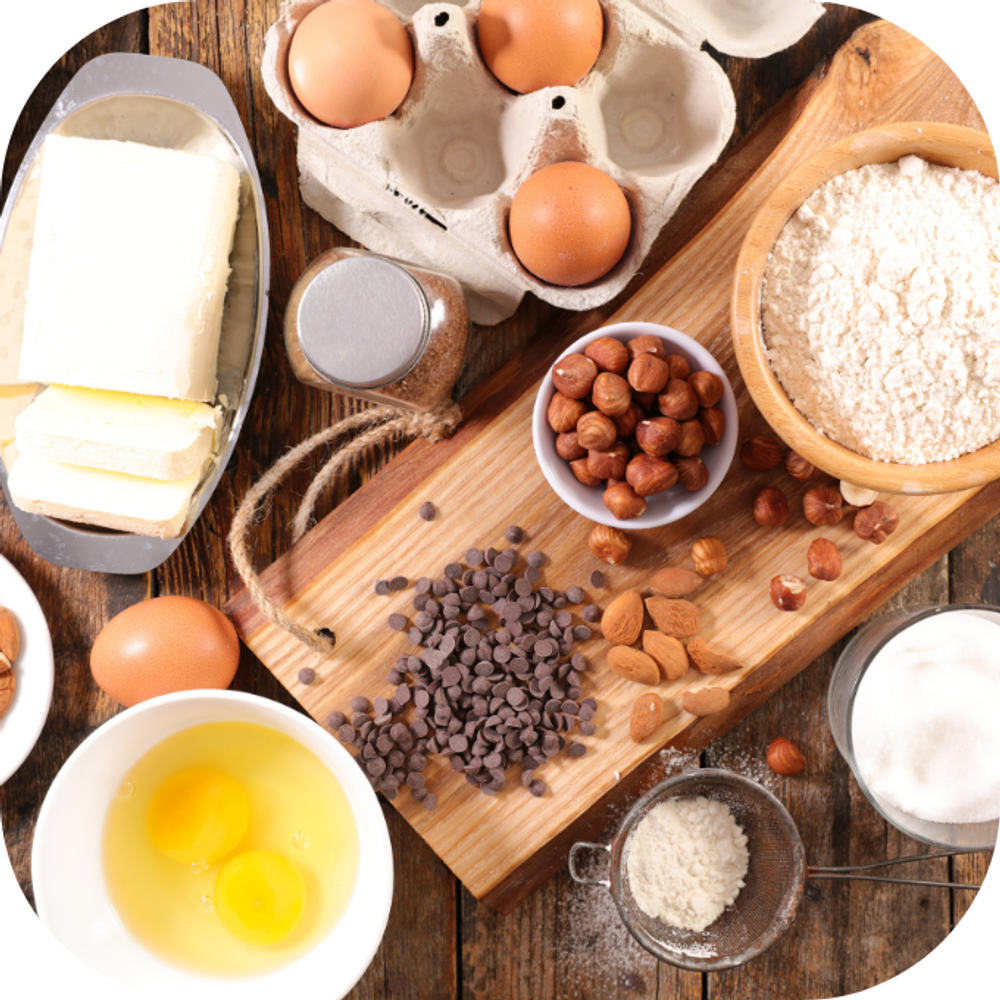 Nguyên liệu trong bánh kem: Bánh kem không chỉ đòi hỏi các nguyên liệu cơ bản như bột mì đa dụng, bơ nhạt, sữa tươi không đường, quả trứng gà, và đường, mà còn có thể được tùy chỉnh với các hương vị và thành phần phụ khác nhau. Hương vani, socola, hoặc các loại trái cây tươi cũng thường được sử dụng để làm tăng thêm hương vị và màu sắc cho bánh kem, tạo ra những phiên bản đa dạng và hấp dẫn.