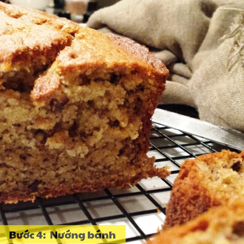 Làm nóng lò nướng trước ở 180°C. Đặt khuôn bánh vào lò và nướng trong khoảng 25-30 phút, đến khi bánh vàng đều và có mùi thơm hấp dẫn. Dùng tăm xiên thử vào bánh, nếu tăm khô ráo là bánh đã chín.