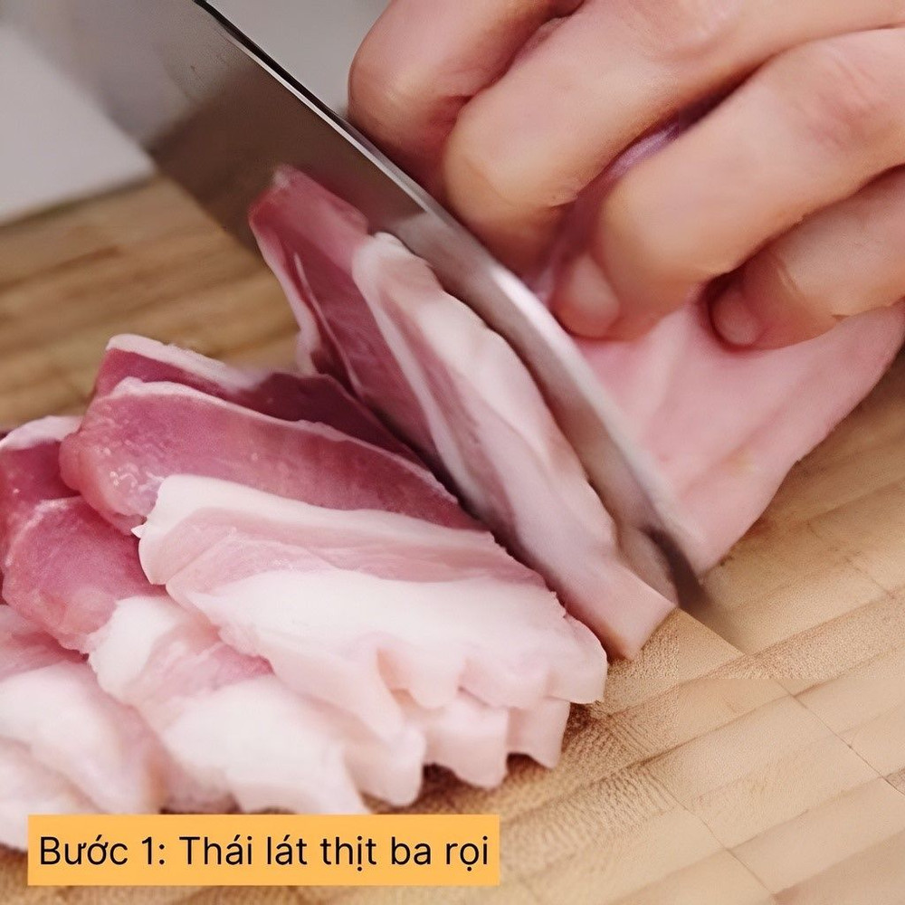 Rửa sạch thịt ba rọi. Sau đó cắt thịt thành lát mỏng vừa ăn.