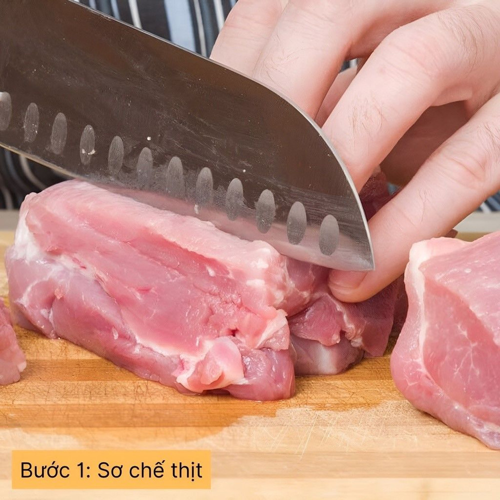 Rửa sạch thịt ba rọi, cắt miếng dài vừa ăn.