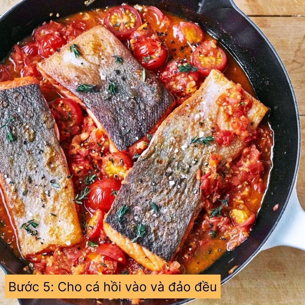 Cá hồi sốt cà chua là sự kết hợp hoàn hảo giữa cá hồi béo ngọt và sốt cà chua chua ngọt. Món ăn này giàu omega-3 và vitamin A, C, giúp cải thiện sức khỏe tim mạch và làm đẹp da.