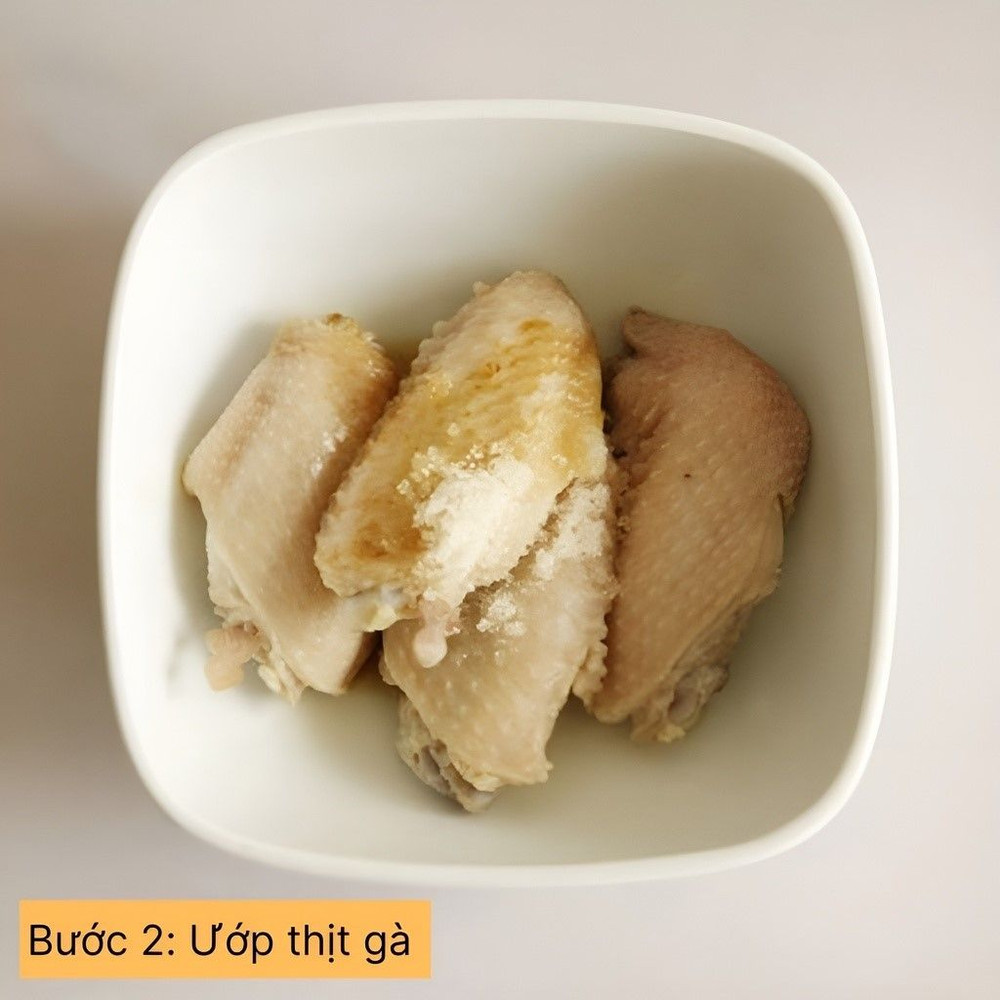 Rửa sạch cánh gà, chặt làm đôi nếu quá lớn.
