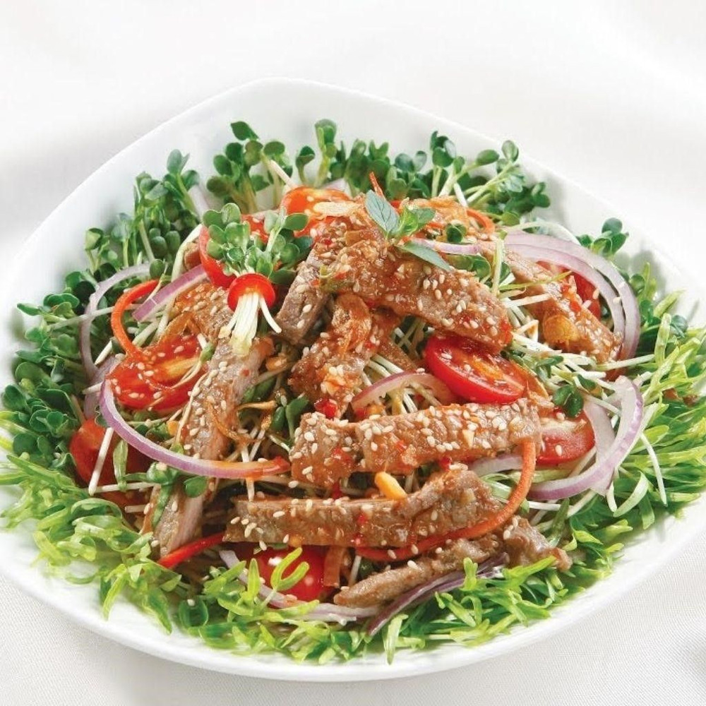 Gỏi bò rau mầm là món gỏi thanh mát với vị ngọt mềm của thịt bò kết hợp cùng vị giòn và hương vị đặc trưng của rau mầm, tạo nên món ăn hài hòa, bổ dưỡng và dễ ăn, phù hợp làm món khai vị hoặc ăn nhẹ.