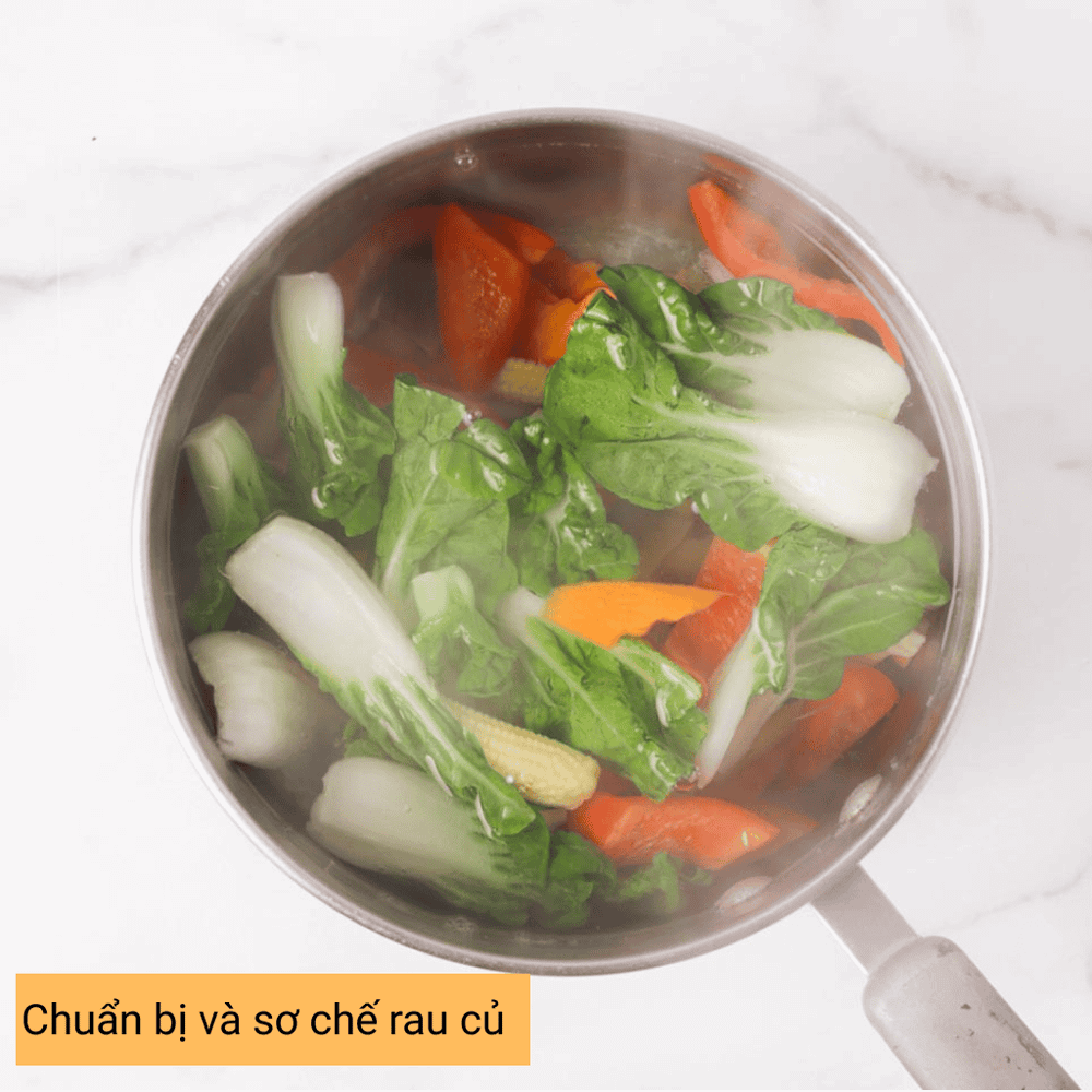 Rau củ rửa sạch, thái lát vừa ăn. Sau đó chần sơ qua nước sôi.