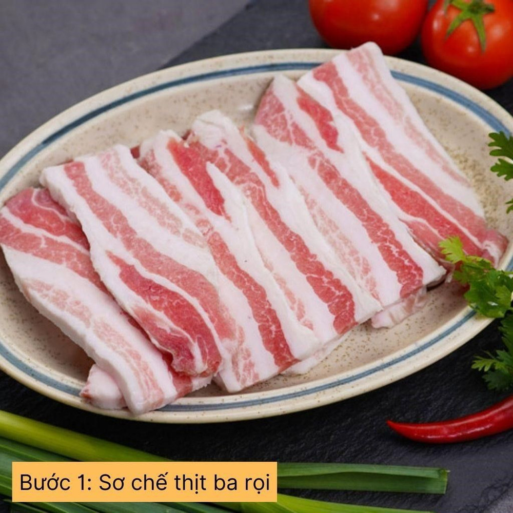 Rửa sạch thịt ba rọi, để ráo nước rồi thái lát vừa phải.