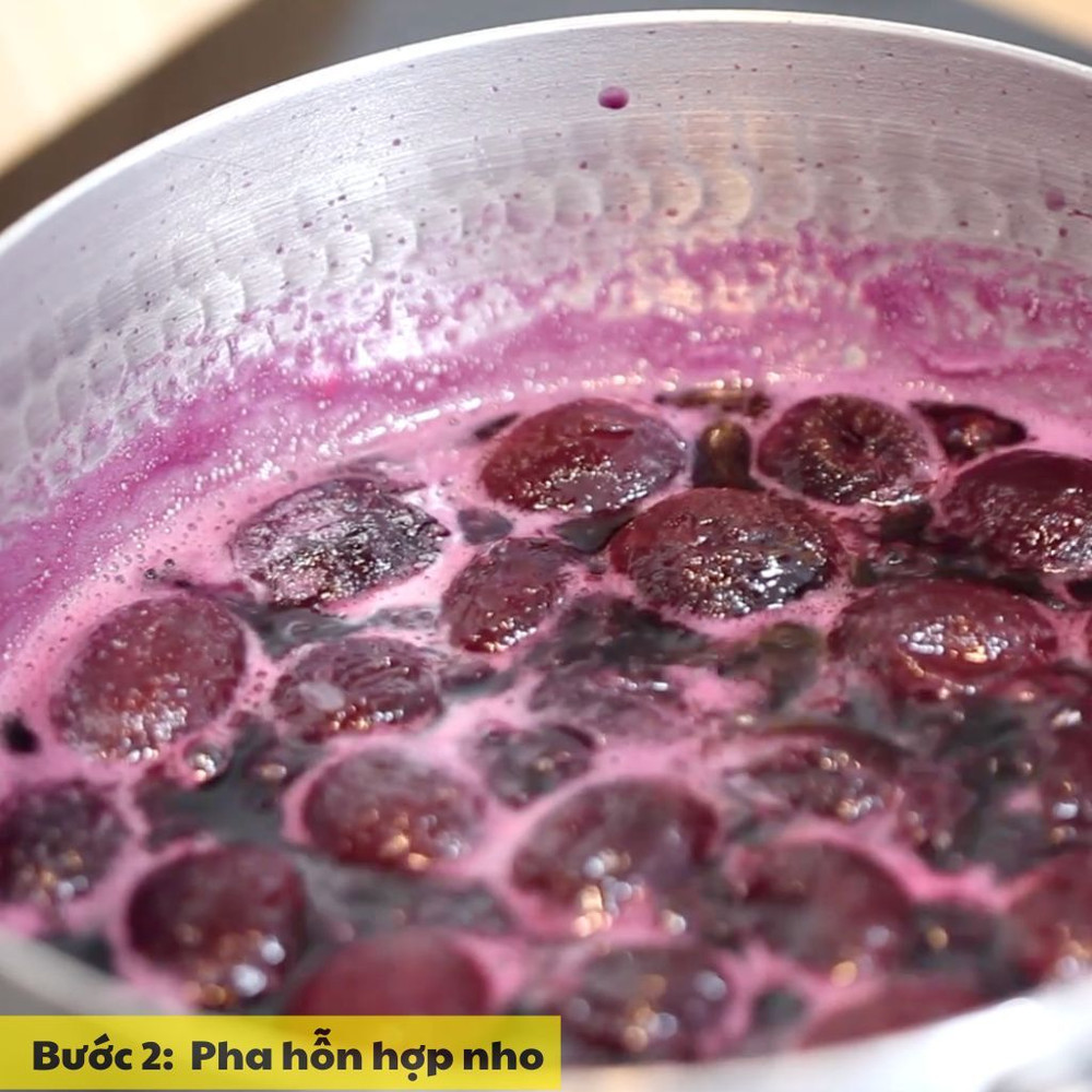 Nho tươi rửa sạch, bỏ hạt. Dùng dụng cụ nghiền hoặc dằm nho để lấy nước cốt.