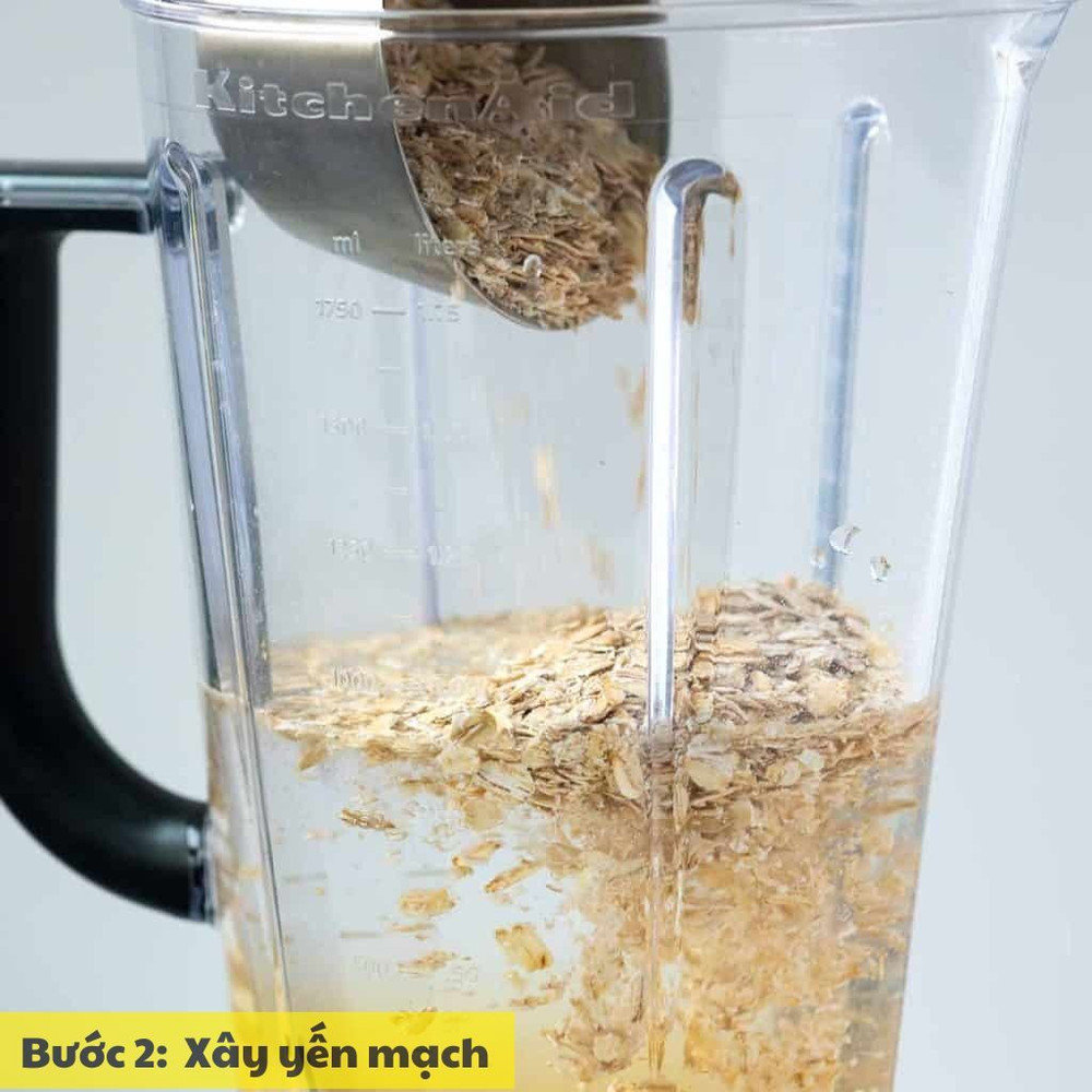 Cho yến mạch đã ngâm và nước lọc vào máy xay sinh tố. Xay nhuyễn trong khoảng 1-2 phút cho đến khi hỗn hợp trở nên mịn và sánh.