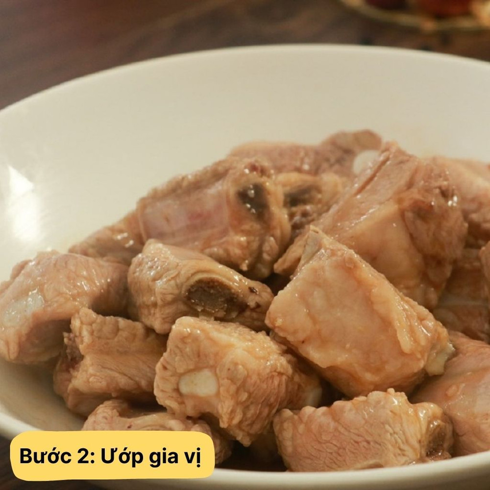 Cho sườn vào bát, thêm nước mắm, đường, hạt tiêu và tỏi băm. Trộn đều và ướp trong khoảng 10 phút để sườn thấm gia vị