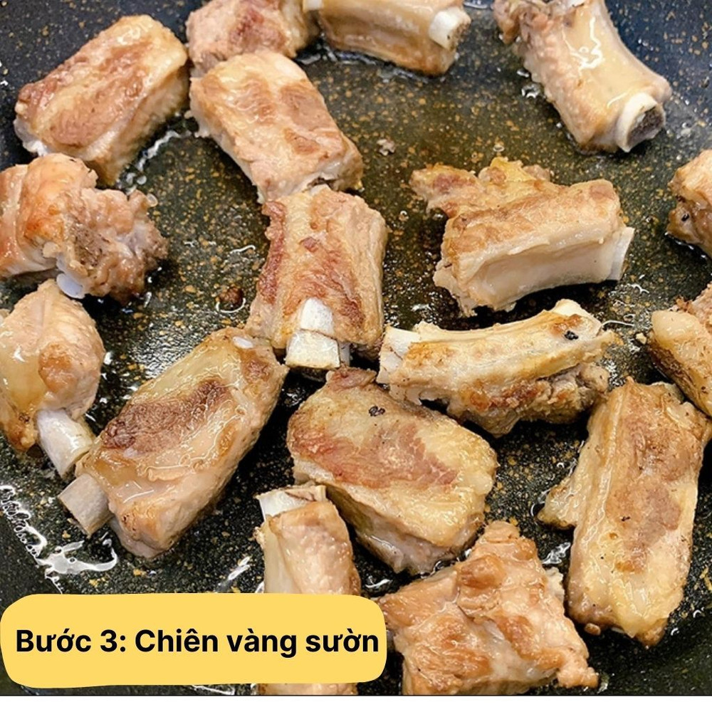 Đun nóng dầu ăn trong chảo, xào vàng đều các mặt sườn