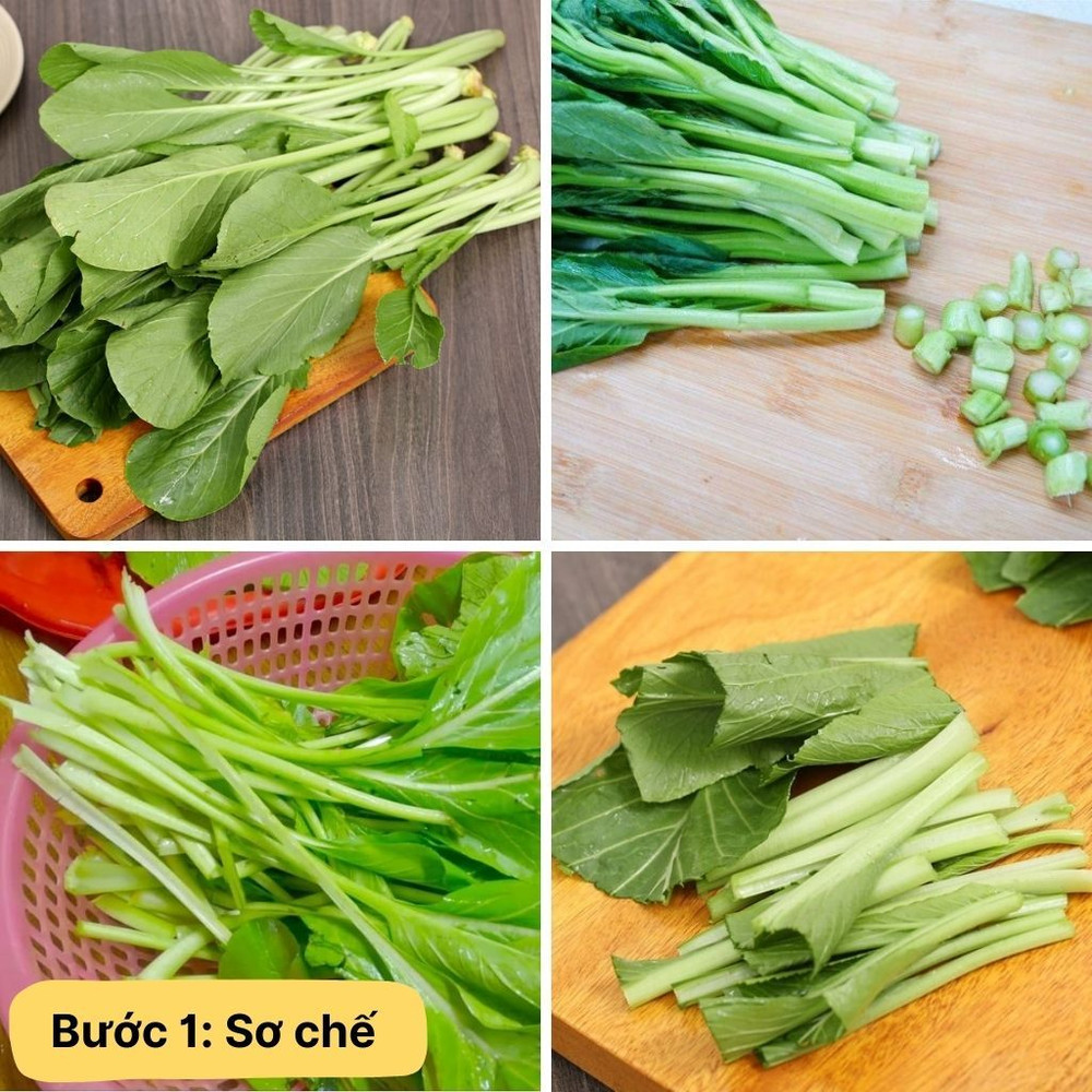 Nhặt và rửa rau cải ngọt dưới vòi nước lạnh để loại bỏ bụi bẩn và cát. Để ráo nước rồi cắt nhỏ đoạn khoảng 5-7cm vừa ăn.