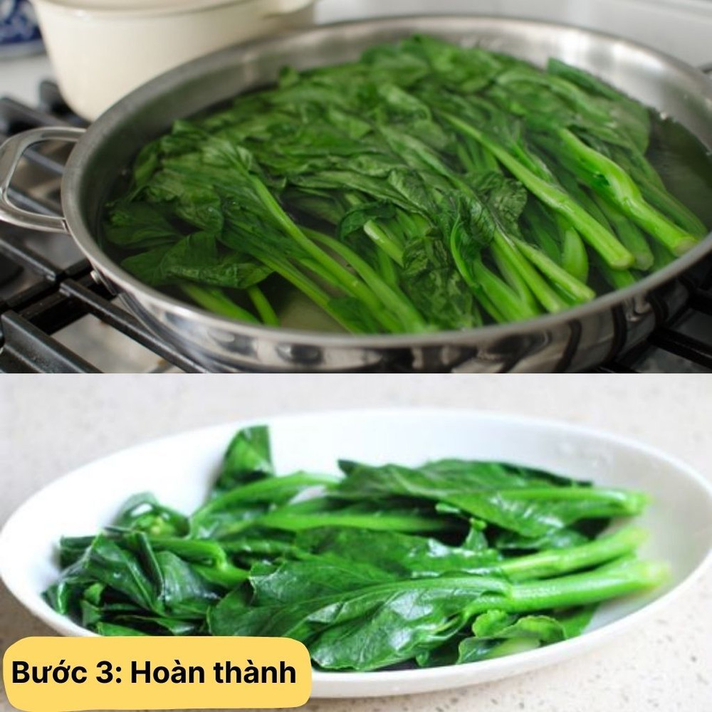 Luộc 3-4 phút cho đến khi rau chín tới, vẫn giữ được màu xanh tươi và độ giòn. Tắt bếp, vớt rau ra đĩa và thưởng thức