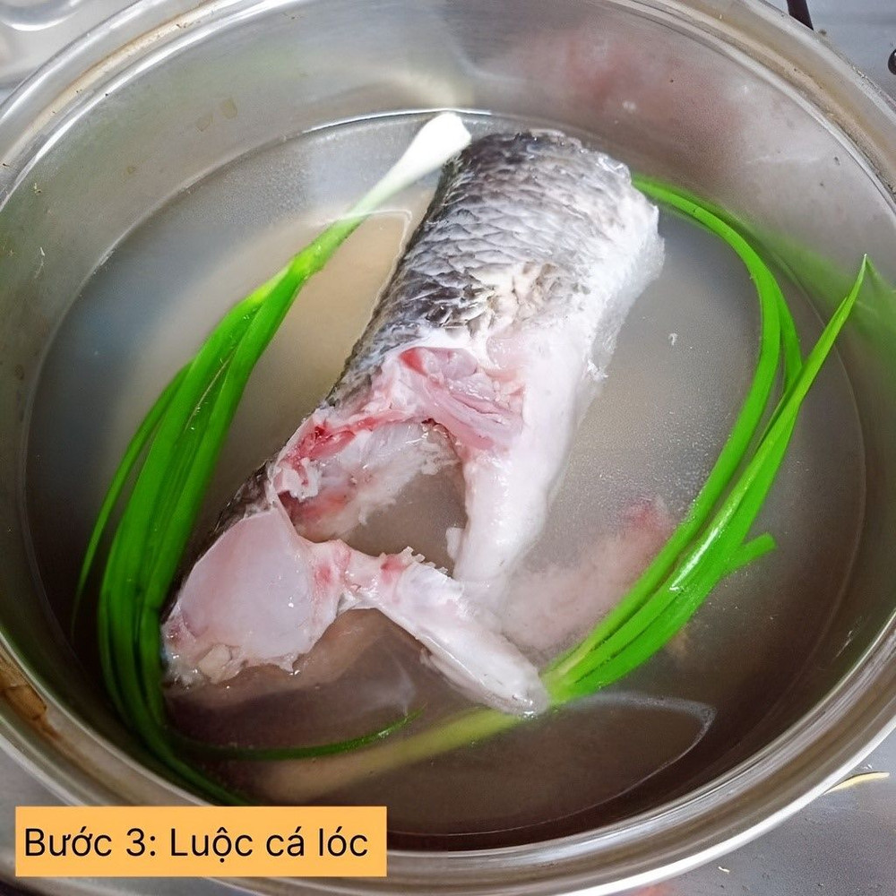 Nấu 1,5 lít nước, thả cá lóc vào nồi nước sôi và nấu chín. Vớt cá ra, giữ lại nước dùng.