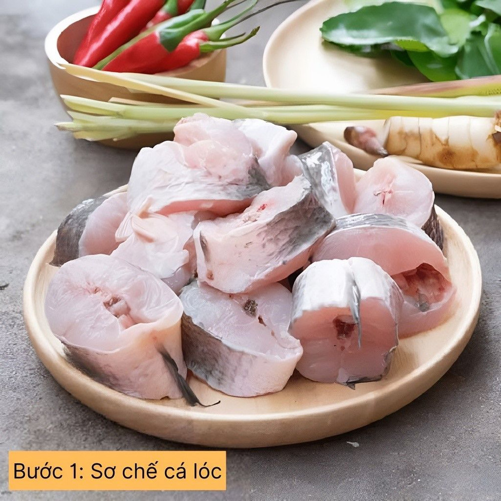 Rửa sạch cá lóc, làm sạch vảy và cắt khúc.