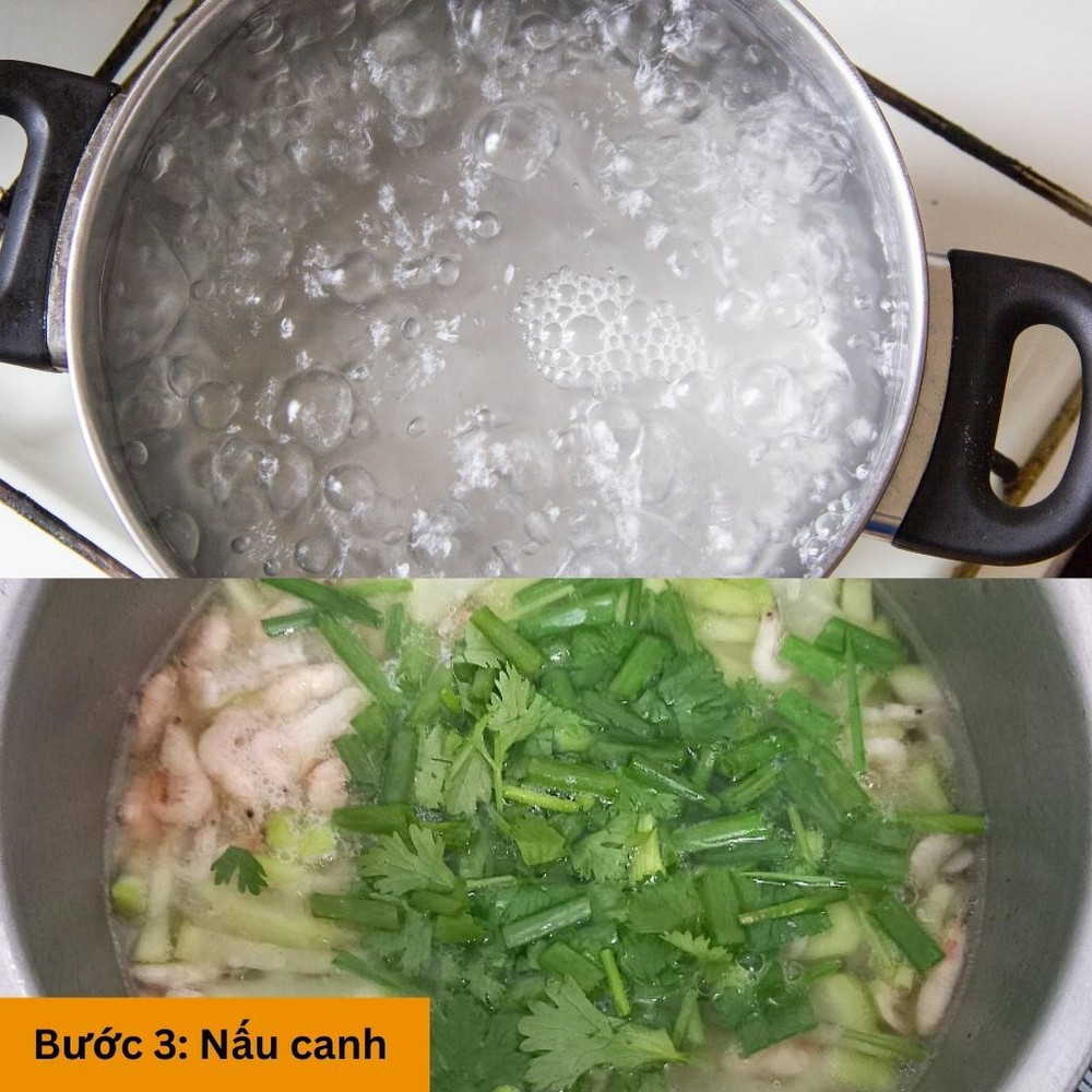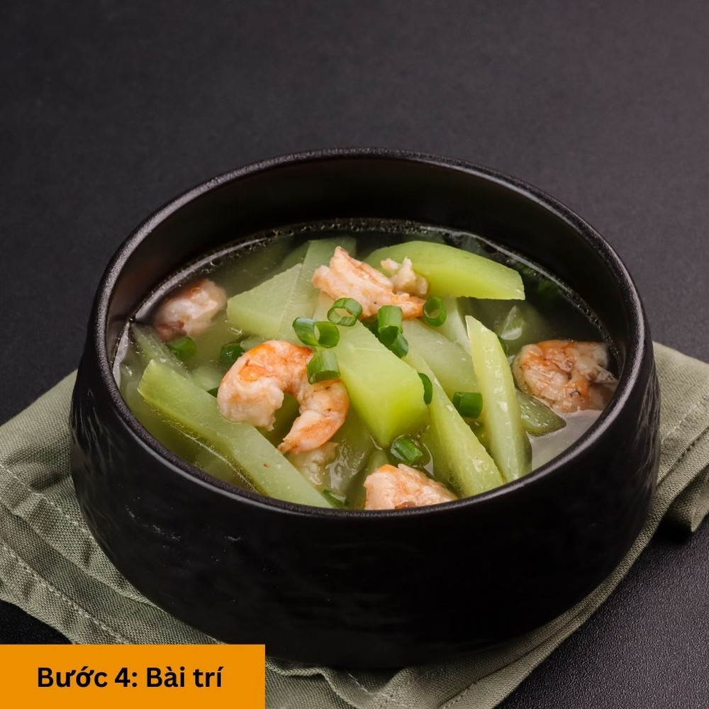 Đổ khoảng 600ml nước vào nồi và đun sôi. Cho bầu và tôm vào, đun với lửa vừa cho đến khi bầu chín mềm (khoảng 3-5 phút). Nêm nếm lại gia vị cho vừa ăn.