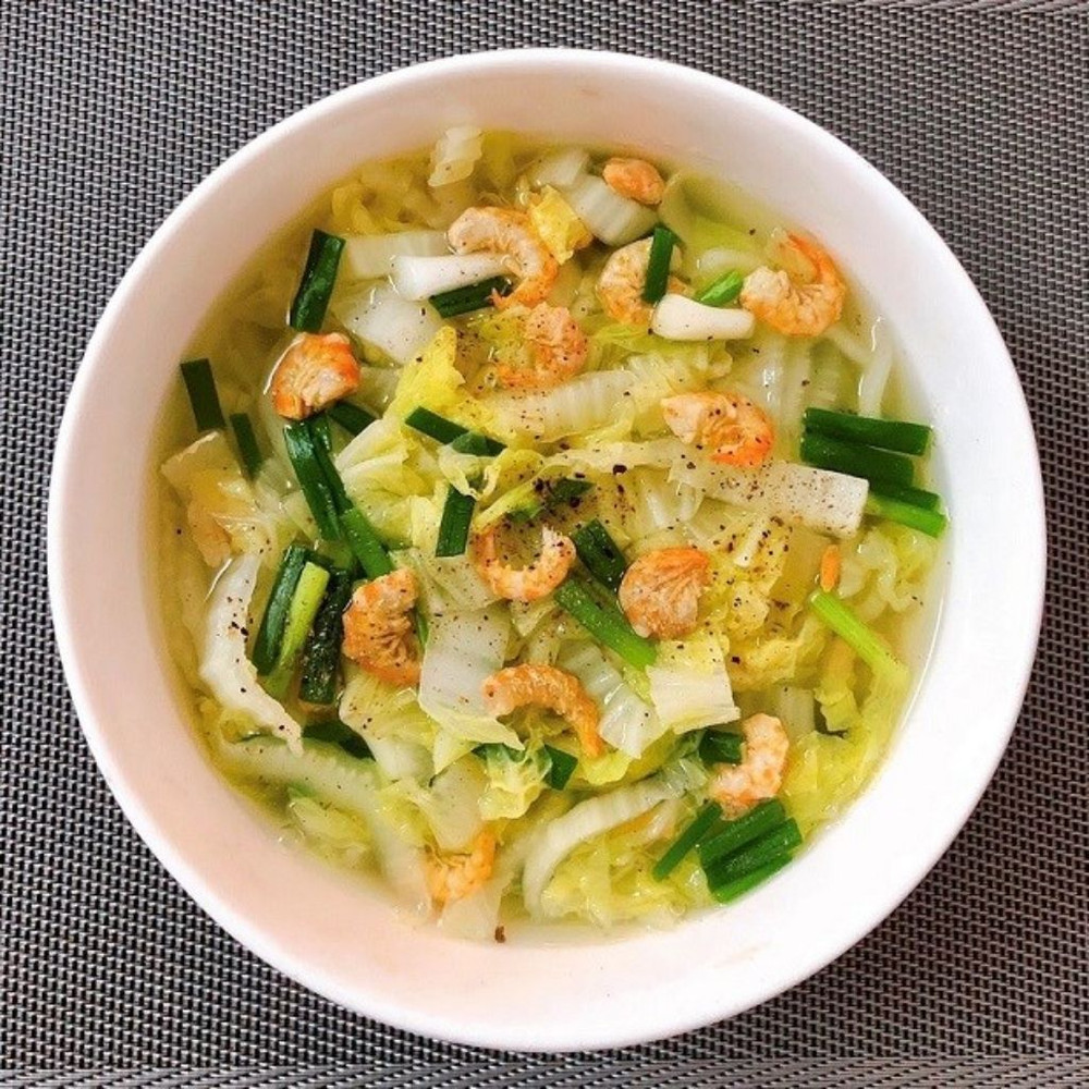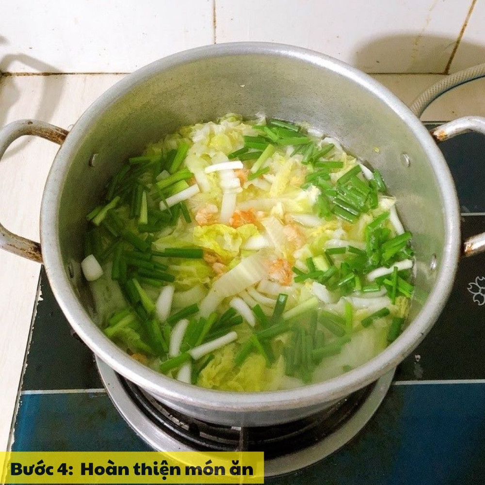 Khi cải thảo chín tới, thêm hành lá vào nồi, đảo nhẹ rồi tắt bếp. Múc canh ra tô, có thể thêm chút tiêu để tăng hương vị. Thưởng thức ngay khi còn nóng.