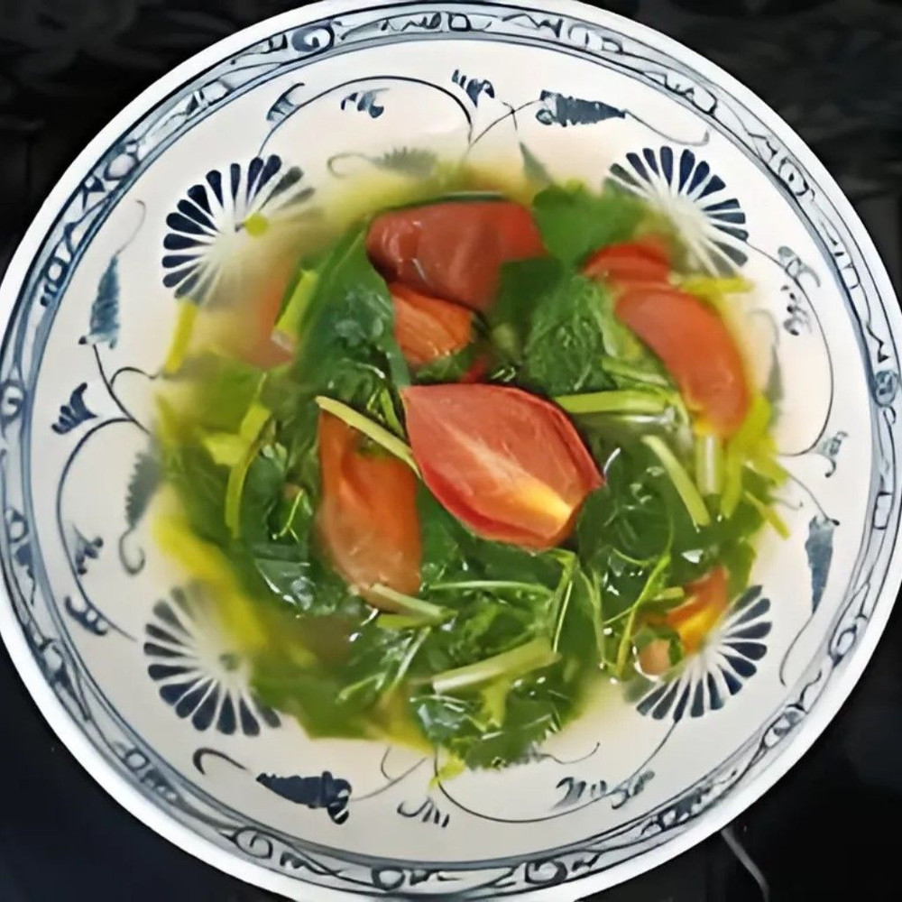 Canh rau muống cà chua là món canh thanh mát, dễ nấu. Rau muống giòn, cà chua chua nhẹ tạo hương vị tươi ngon. Nấu đơn giản với nước dùng, nêm nếm gia vị vừa ăn. Thường được dùng kèm cơm trong bữa cơm hàng ngày.