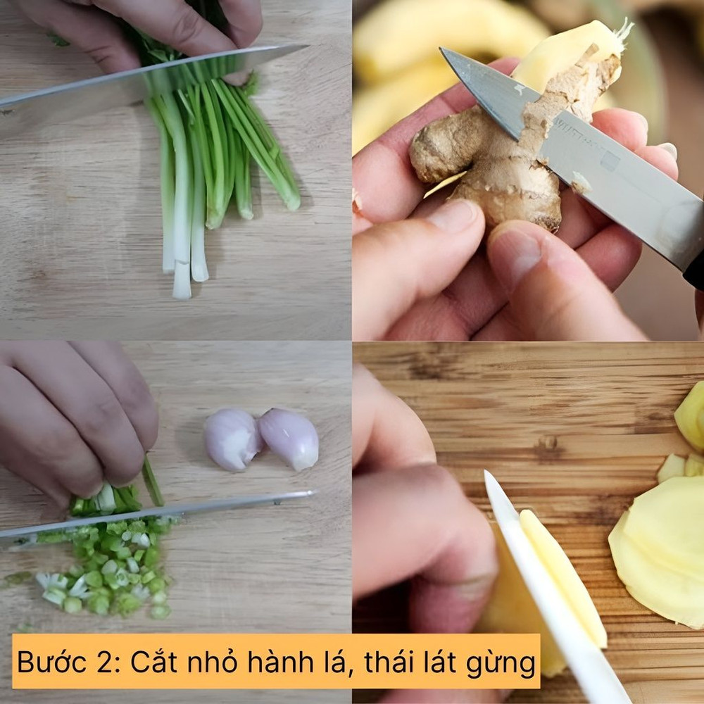 Hành lá cắt nhỏ, gừng cắt lát mỏng.