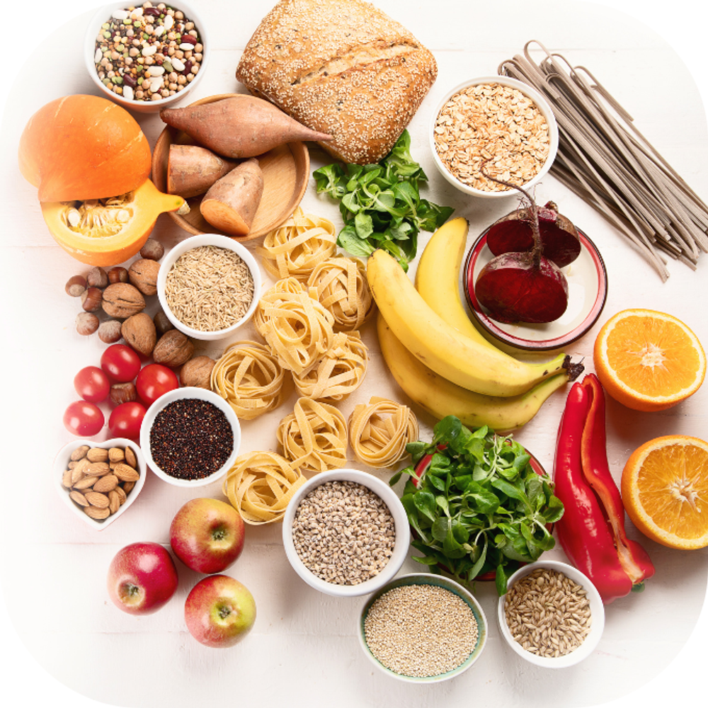 Nguồn chất đường bột tốt nhất bao gồm các loại ngũ cốc nguyên hạt, khoai tây, đậu, và trái cây.