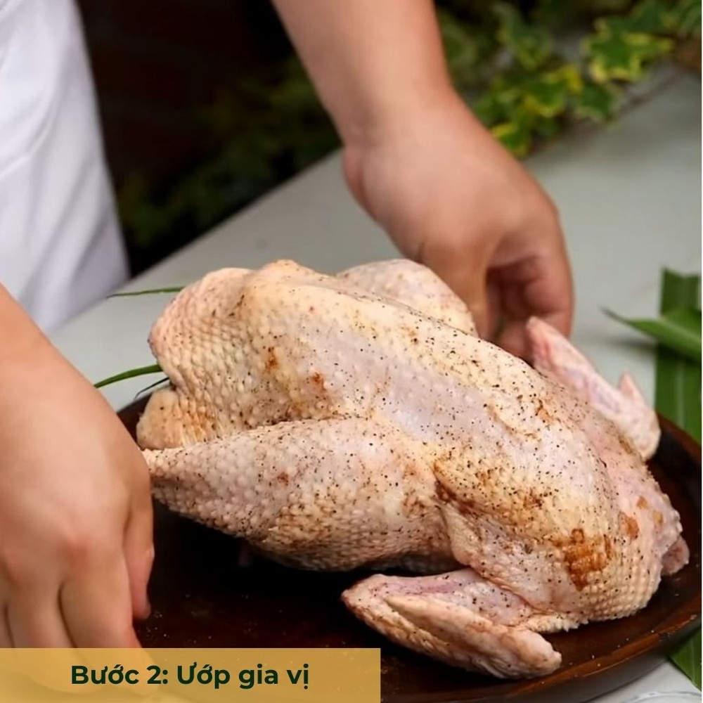 Ướp gà với muối, tiêu, nước mắm và tỏi giã nhỏ trong khoảng 20-30 phút để thịt ngấm gia vị.