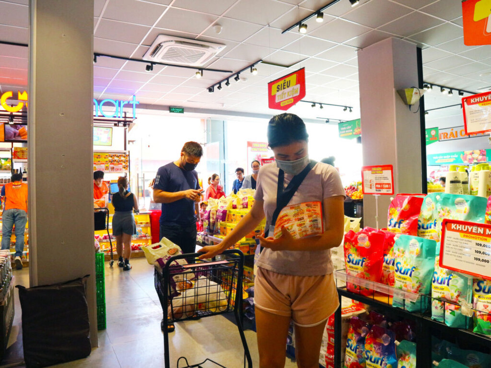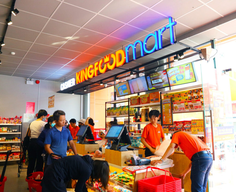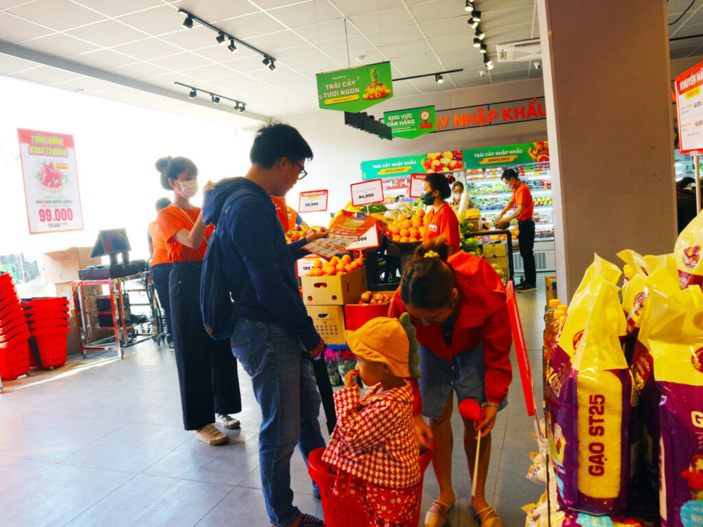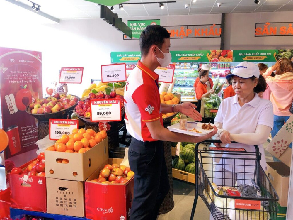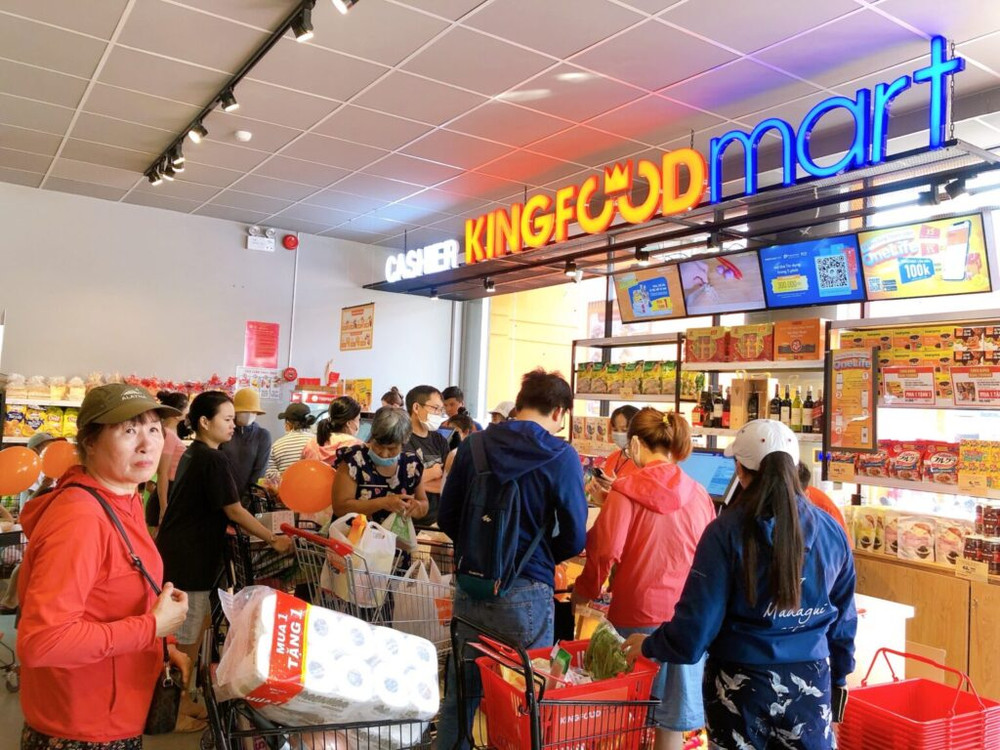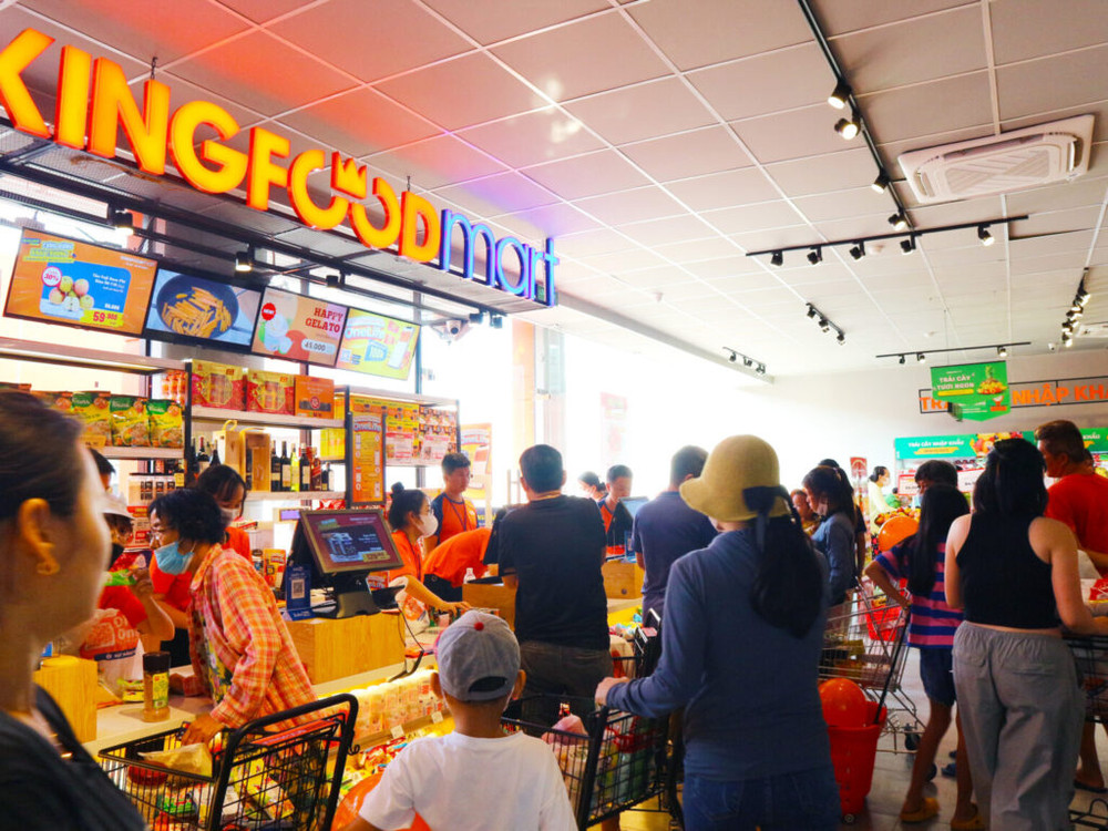Ngay từ sáng sớm, người dân quanh đây đã đến thăm quan cửa hàng và ủng hộ nhiệt tình. Giỏ hàng của ai cũng đầy ắp các sản phẩm siêu ưu đãi nhà Kingfoodmart.