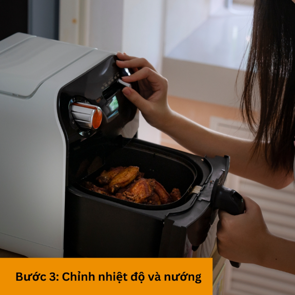 Làm nóng nồi chiên không dầu trước ở nhiệt độ 180°C trong 5 phút. Nướng sườn ở nhiệt độ 180°C trong 10 phút. Sau đó, lật mặt sườn và tiếp tục nướng thêm 10-15 phút nữa.