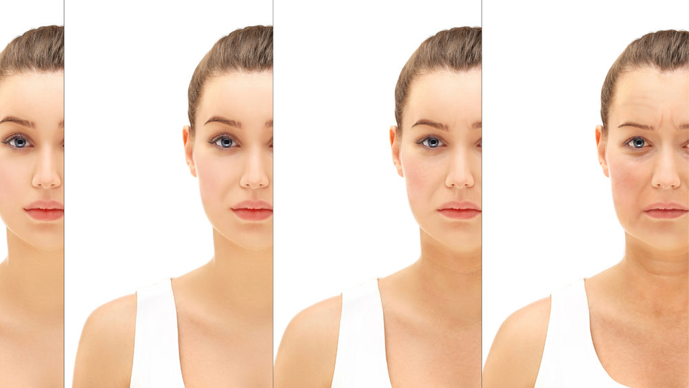 Lão hóa da mặt lúc ban đầu xuất hiện các đường nhăn, rồi đến các nếp nhăn, theo thời gian chúng sẽ từ từ hiện rõ trên gương mặt. Đặc biệt, lão hóa da vùng mắt thường xuất hiện trước tiên vì vùng da ở mắt mỏng và nhạy cảm hơn. Ngoài ra lão hóa da còn xuất hiện sớm ở vùng da cổ, da gần khóe miệng. Theo như các nghiên cứu thì nam giới có tốc độ lão hóa chậm hơn so với nữ giới vì da họ có lượng Collagen lớn và dày hơn.
