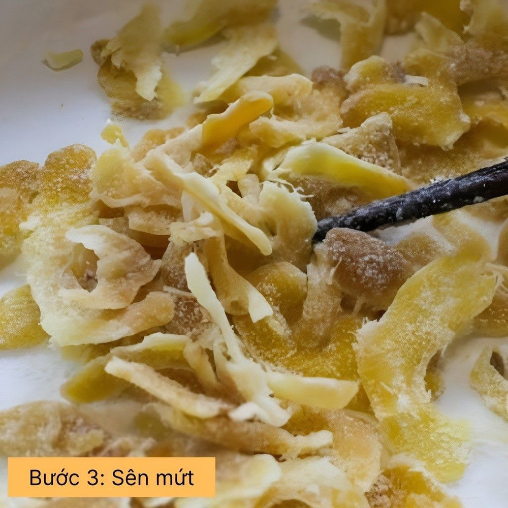 Đun sôi nồi nước, cho gừng vào luộc khoảng 5-7 phút, sau đó vớt ra và xả nước lạnh. Lặp lại bước luộc và xả thêm 1 lần nữa để gừng giảm độ cay.