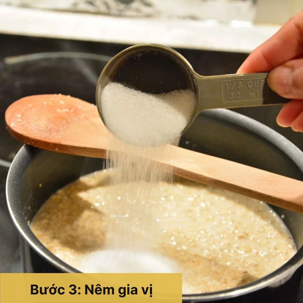 Đun sôi hỗn hợp, sau đó hạ nhỏ lửa và đun liu riu trong khoảng 3-5 phút hoặc cho đến khi yến mạch chín mềm.
