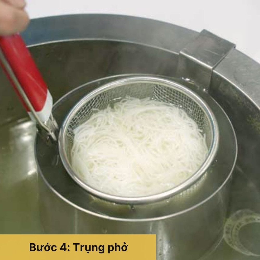 Trụng bánh phở qua nước sôi trước khi ăn.