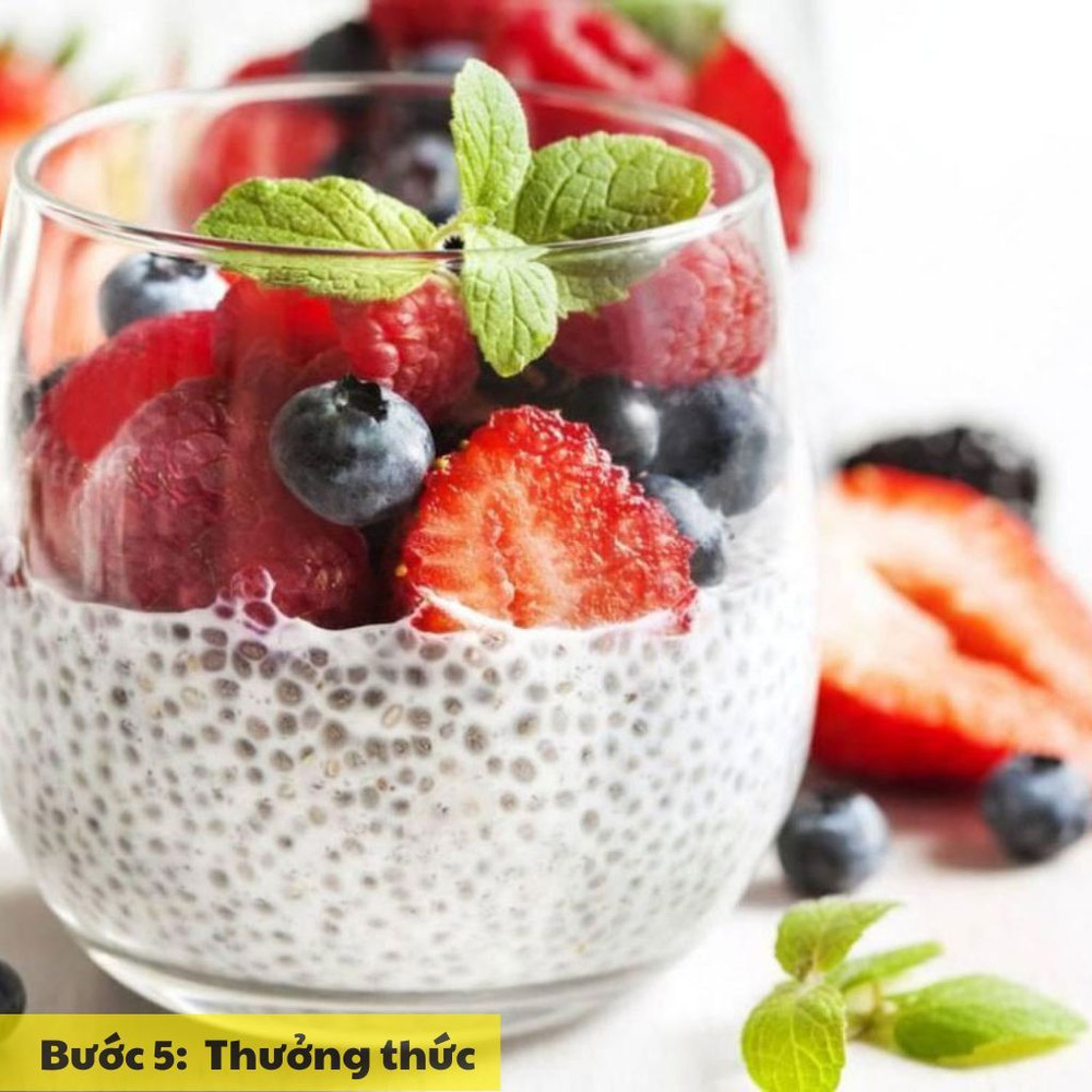 Món sữa chua hạt chia có thể dùng ngay hoặc để trong tủ lạnh khoảng 30 phút trước khi thưởng thức để món ăn thêm mát lạnh và hấp dẫn.