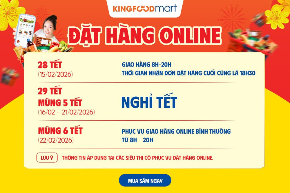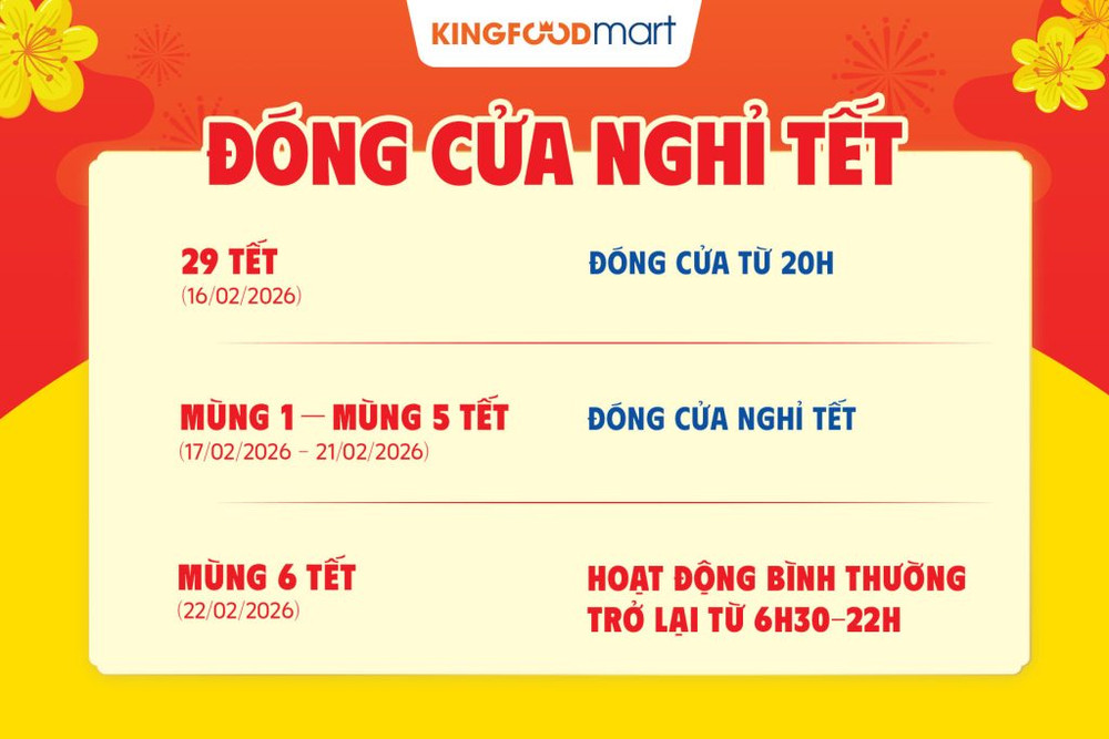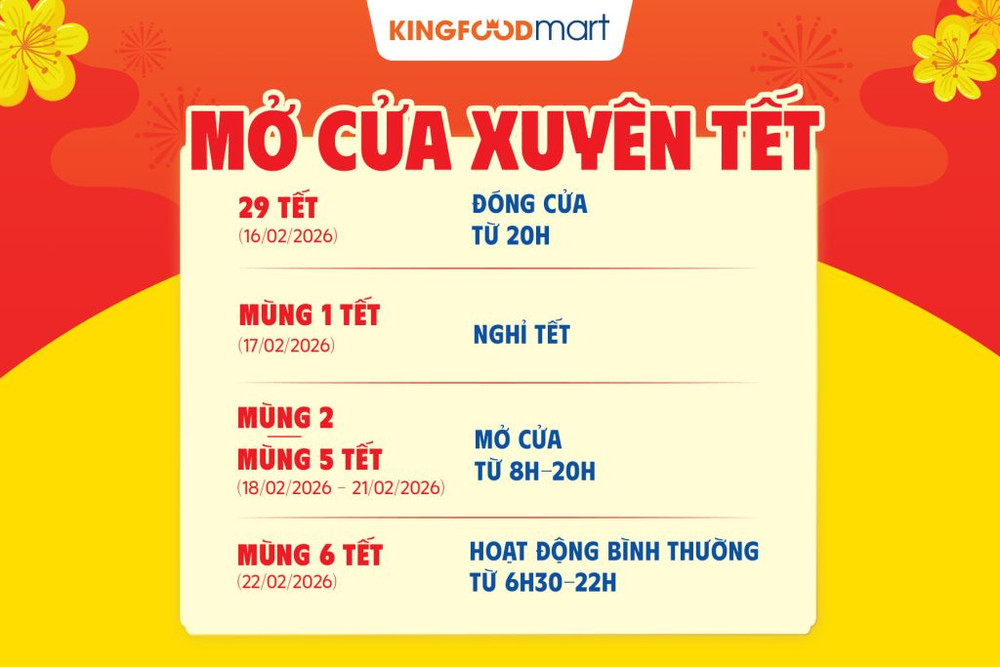 Chào đón xuân Bính Ngọ 2026, để Quý khách hàng chủ động trong việc mua sắm thực phẩm tươi ngon cho gia đình, Siêu thị thực phẩm Kingfoodmart xin thông báo lịch hoạt động chi tiết tại hệ thống siêu thị như sau: