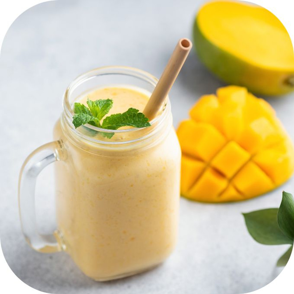 Với pha trộn chuối, bina kale, dứa, hạnh nhân, nước trái cây táo và dừa, cùng protein thực vật, sinh tố xoài và kale là lựa chọn phù hợp cho những người theo chế độ ăn chay. Trong mỗi khối lượng 20 oz (590 mL), loại nước ép này cung cấp 340 calorie, 11 gam protein và 6 gam chất xơ. Bạn có thể giảm lượng carbohydrate bằng cách thay thế nước trái cây bằng thức uống thực vật có chỉ số carbohydrate thấp.