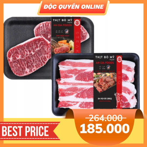 Combo lõi vai bò Mỹ steak 300g và ba chỉ bò Mỹ 200g